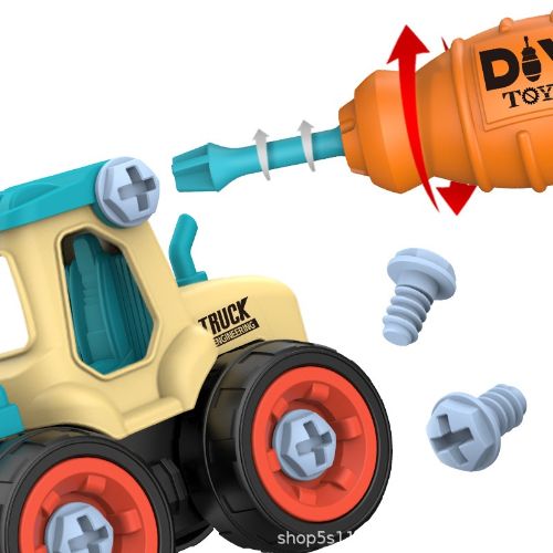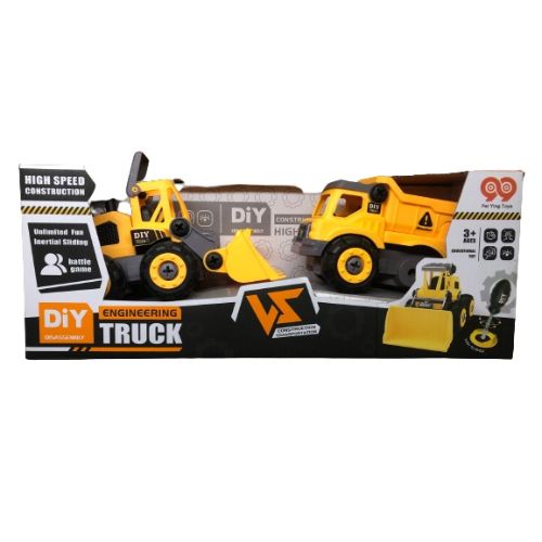 Juego de vehículos de construcción desarmables. Tienen una estructura firme y son muy faciles de armar y desarmar. Los niños podrán desarrollar su imaginación e interactuar con otros niños y adultos. Son dos vehículos de construcción. Las imágenes son solo referenciales