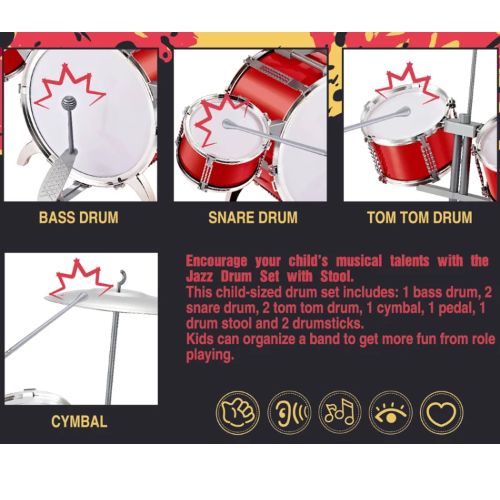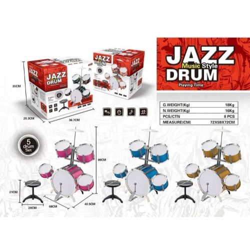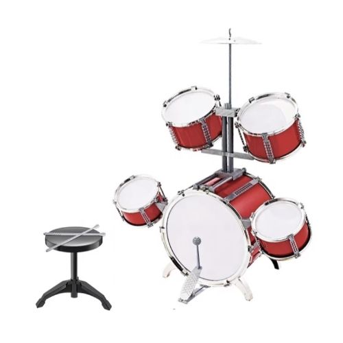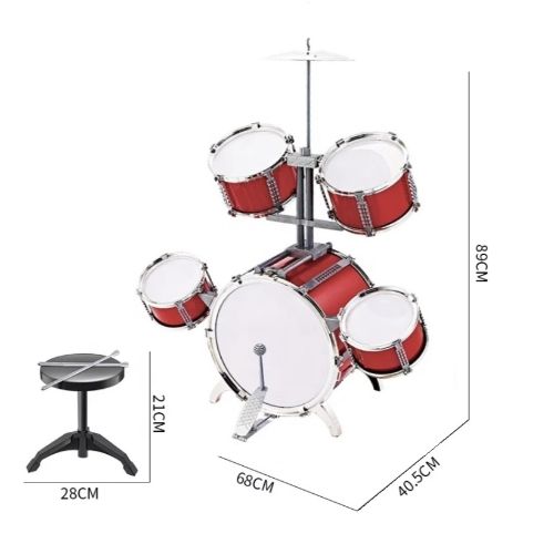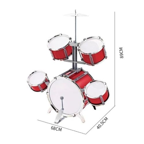 Espectacular batería de juguete de 5 tambores y platillo. Estimula la creatividad y desarrolla el área artistica y musical de los niños. Ayuda a mejorar la capacidad de coordinacion de los infantes. Dimensiones del producto : 89 cm x 68 cm x 40,5 cm, Las imágenes son solo referenciales