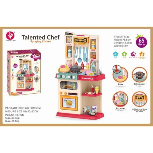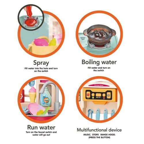 Cocina de Juguete 65 Piezas con Luces, Música, Spray de Agua Etc.