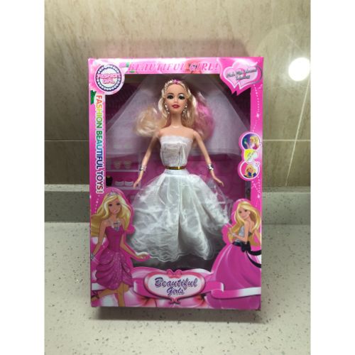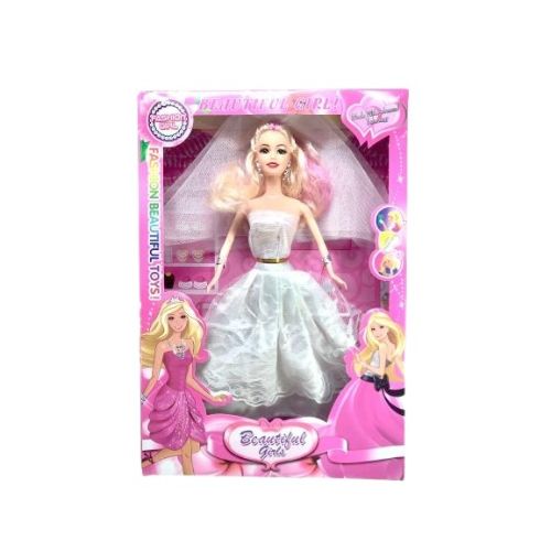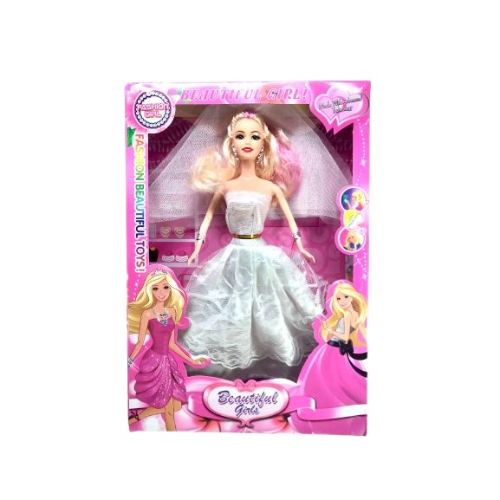 Bella muñeca vestida de novia. Las tardes serán más entretenidas jugando con la muñeca y su vestido de novia blanco con adornos. Las imágenes son solo referenciales
