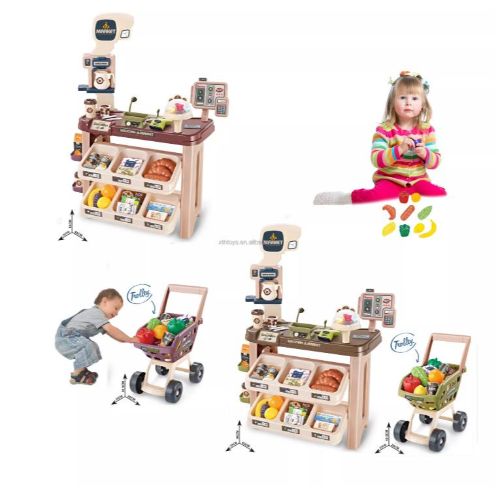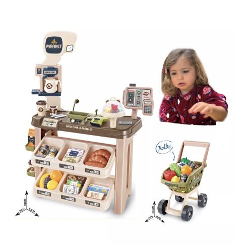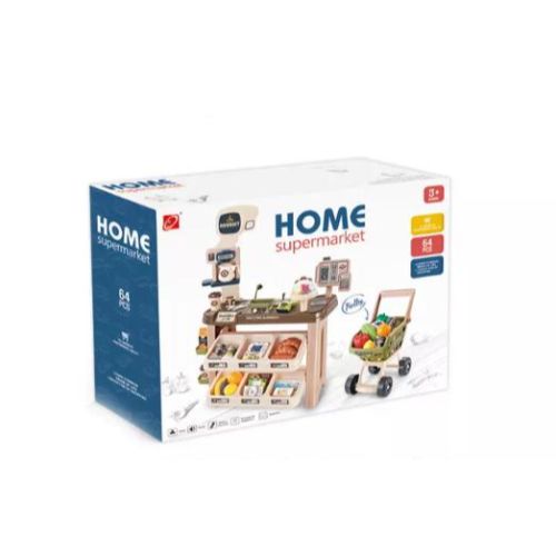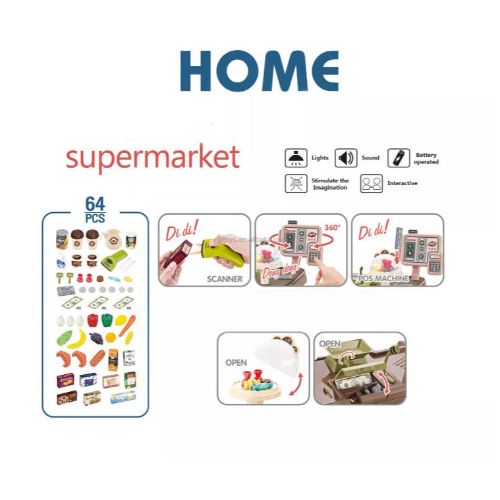 Espectacular supermercado de lujo de 64 piezas, especial para jugar, interactuar y estimular la imaginación de los niños. Cuenta con música, luces, carro de supermercado, caja registradora, scanner y dinero de juguete y máquina POS para simular y aprender a realizar pagos en efectivo y/o con tarjetas de crédito o débito. Utiliza pilas 2A no incluídas la caja. Recomendado para niños mayores de 3 años. Dimensiones supermercado : 84 cms x 63 cms x 35 cms; Dimensiones carrito : 40,5 cms x 33 cms x 20 cms. Las imágenes son solo referenciales