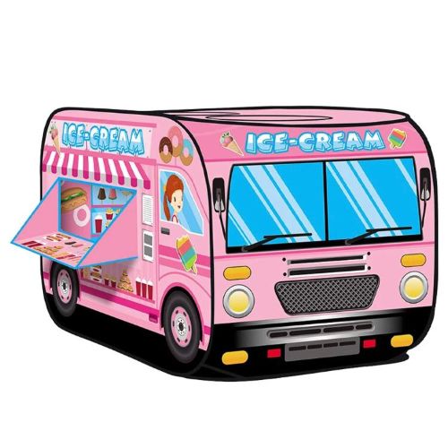 Espectacular carpa plegable de fácil armado y desarmado. La carpa está compuesta de una sola pieza plegada, la cual se arma en forma instantanea en el momento de desempecarla y estirarla. Su especial diseño de local de venta de helados, es ideal para que los niños puedan imaginar y disfrutar de una divertida tarde de entretención. Se guarda en una bolsa de poco peso y fácil de transportar. Especial para que los niños puedan jugar o descansar dentro de la carpa. Fabricado en material tejido 100% poliester. Las imágenes son solo referenciales
